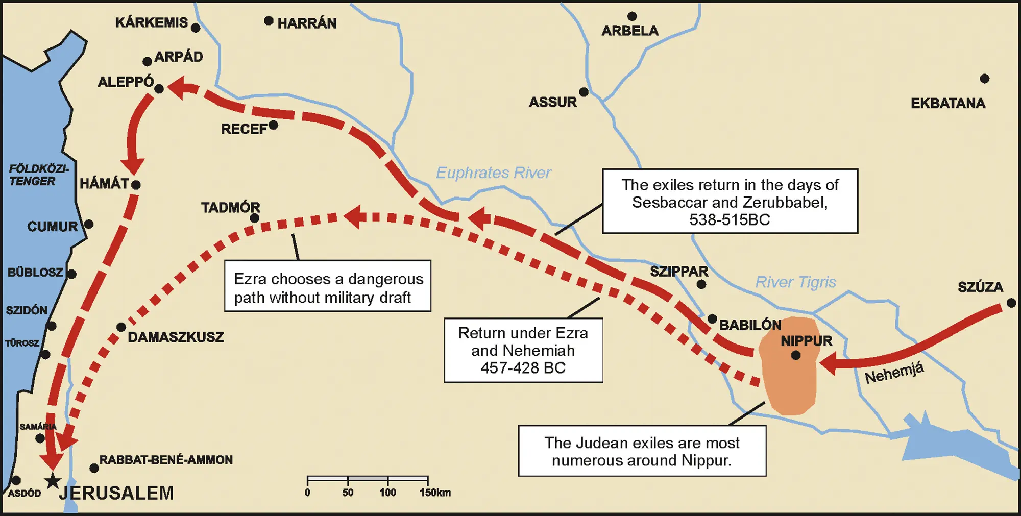 – The people started to return to the land of Israel. Through decades they returned in several waves. The first returners were led by Zorobabel – a duke from the house of David – and Joshua, the High Priest. In Jerusalem, on the Temple Mount, they raised the altar of burnt offerings; in the second year they put down the foundation stone of the Temple. However, as a consequence of the slanders coming from the surrounding nations the construction stopped.
